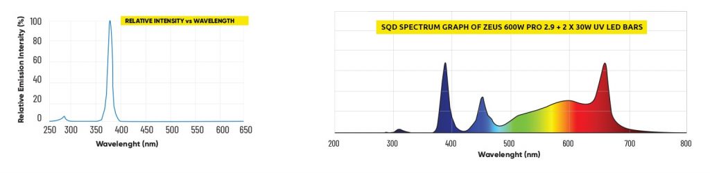 Always mix the supplemental UVB + UVA radiation with the previously mentioned Lumatek Zeus Full Spectrum LED Range, starting from 12 hours photoperiod to less during the Flowering grow stage, at least 4 weeks before harvest.