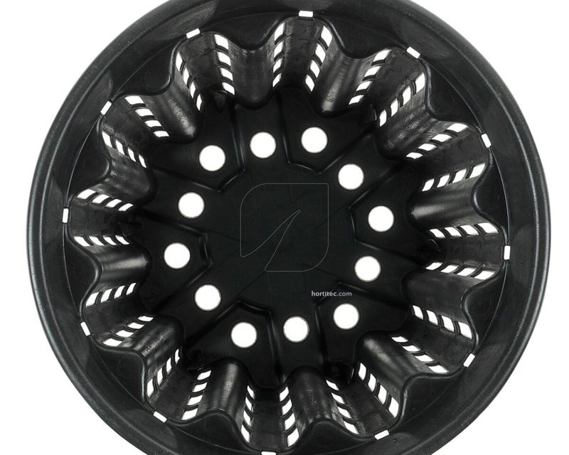A ventilated plastic nursery pot engineered to prevent root spiraling via an air-pruning system — roots reaching air holes are naturally pruned, encouraging dense, fibrous growthÂ