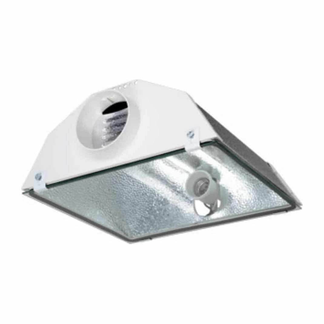 The Spudnik is air-cooled reflector with optimised design of inner reflectors to increase the PAR to highest levels. The PVD-coated aluminium ensures up to 95% reflection after patterning process. The double walled housing with tunnel cooling effect guarantees optimum cooling. The safety glass with polished edges and 93% transmission reduces losses through the glass. White side panels, made of heat-resistant and impact-resistant, glass-reinforced nylon with connecting flange and pre-wired junction box, make the Spudnik unique in the world and set a new standard. The quality E40 ceramic lampholder Made in Italy holds a valid CE certificate.