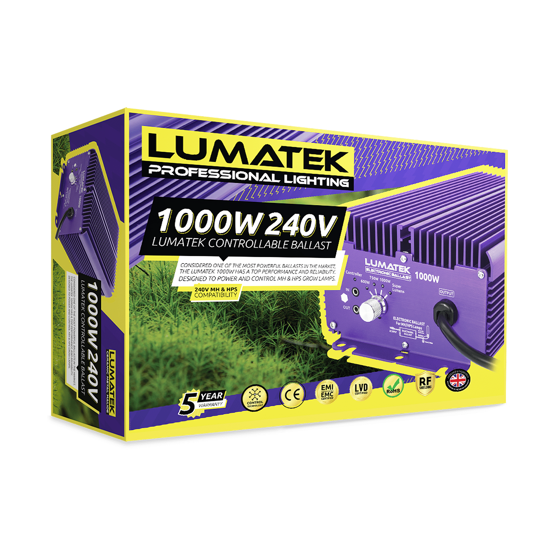 This fantastic Dimmable & Controllable Digital Ballast is so reliable it comes with an amazing 5 year guarantee and for safety uses full circuit protection including open/short circuit, over temperature, over/low voltage, end of lamp life/rectification and EMI suppression. The Lumatek 1000W also features a fast start up facility and generates much less heat than other conventional ballasts. Enjoy longer bulb-life too with this high capacity digital ballast, as the Lumatek 1000w is incredibly stable and reliable, ensuring unbeatable grow room results.