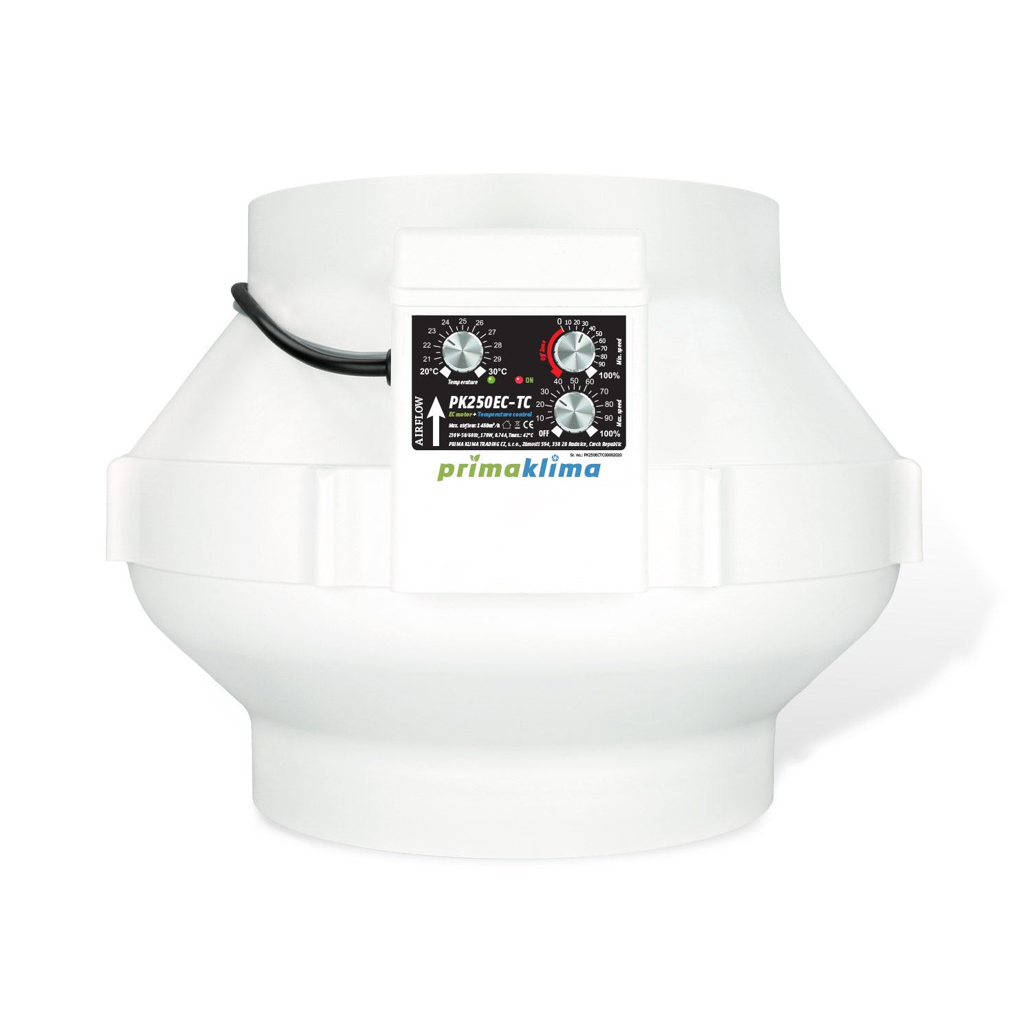 Highly efficient inline duct fan equipped with an premium ebm-papst motor with very low power consumption thanks to EC-Technology.